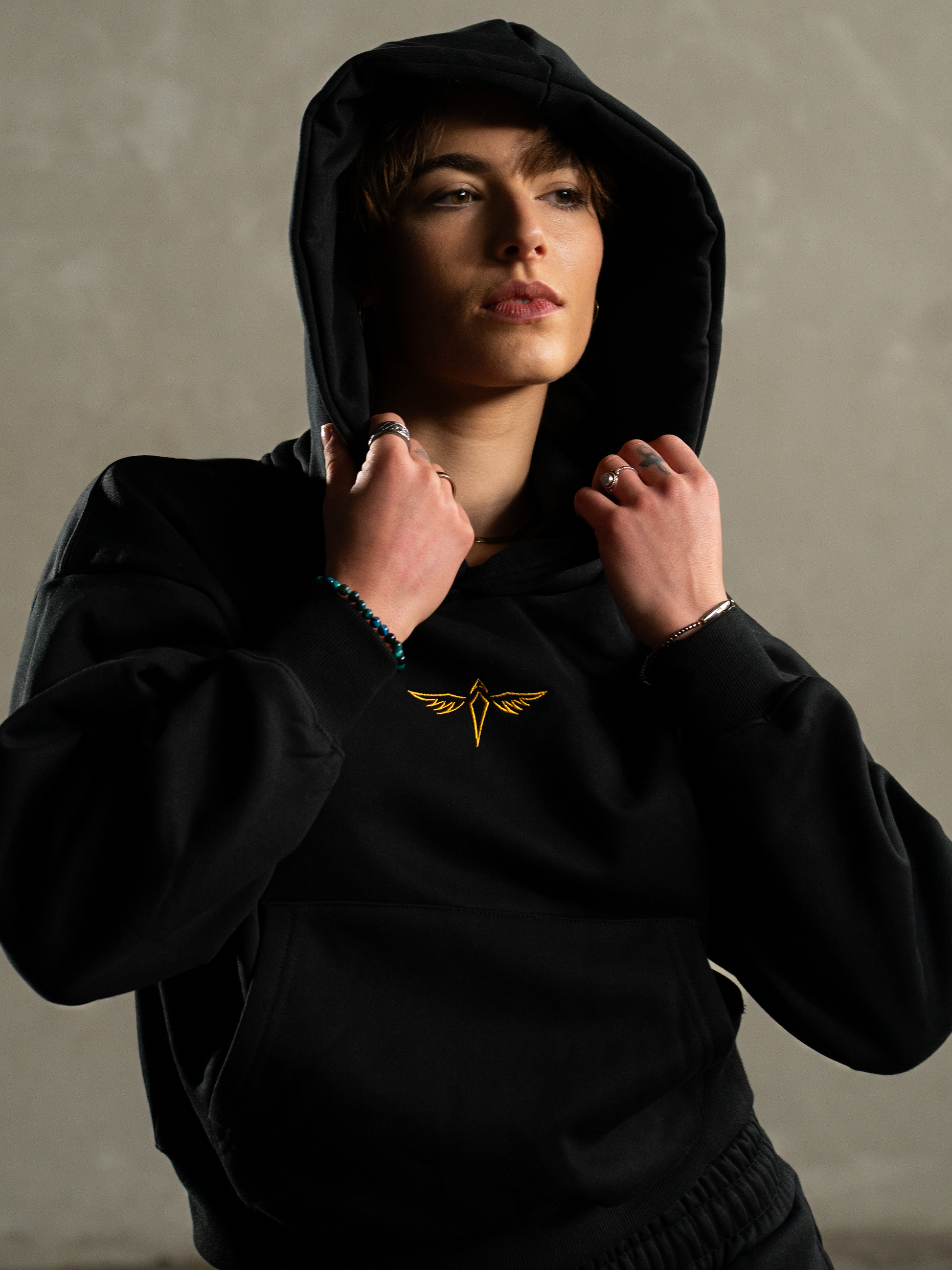 Introducing our Black Heavyweight Hoodie, a modern essential crafted in a 750GSM premium poly-cotton blend, exclusively designed by our in-house team. With its cropped silhouette and oversized hood, this piece strikes the perfect balance between streetwear confidence and refined minimalism.